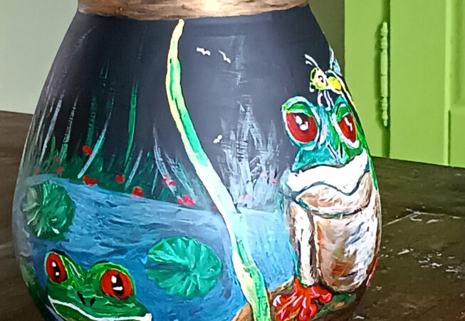 Diverse gedecoreerde vazen en potten heb ik in voorraad. Maak een keuze en stuur mij een mail meer info.