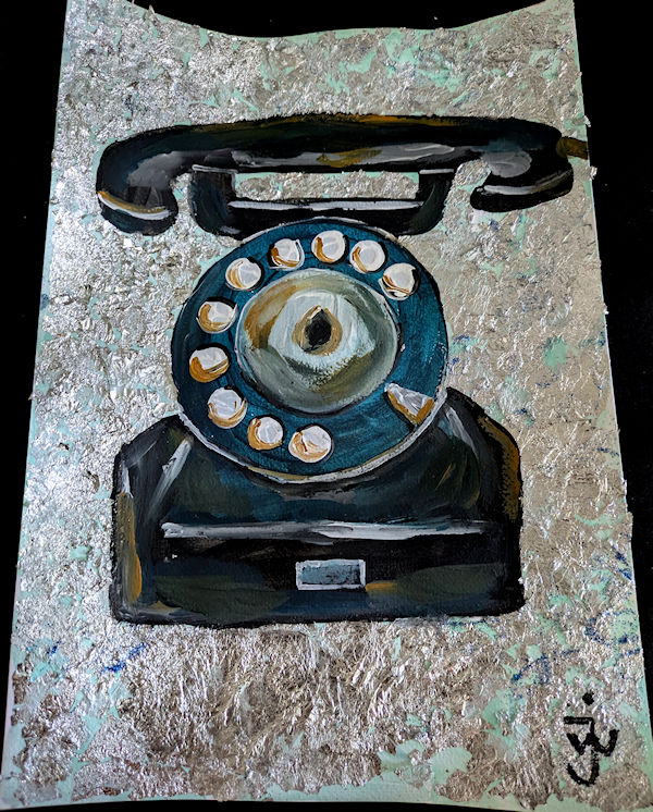 Wanddecoratie prent met telefoon – prijsinfo via mail